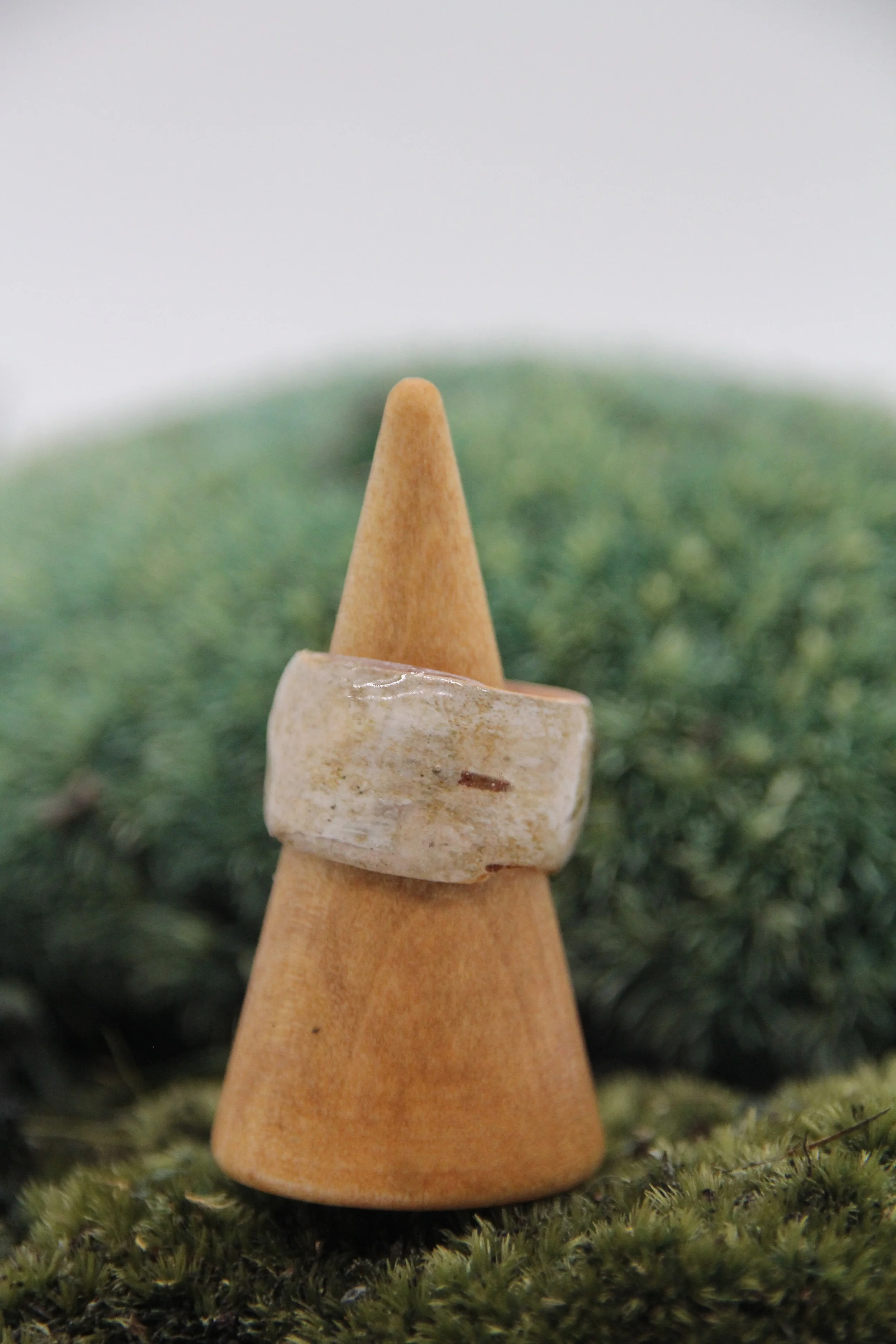 Sustainably foraged, Massachusetts birch bark hand crafted into a band and preserved in resin. Incredibly comfortable and light. This ring adds a touch of nature to your style and is very versatile.